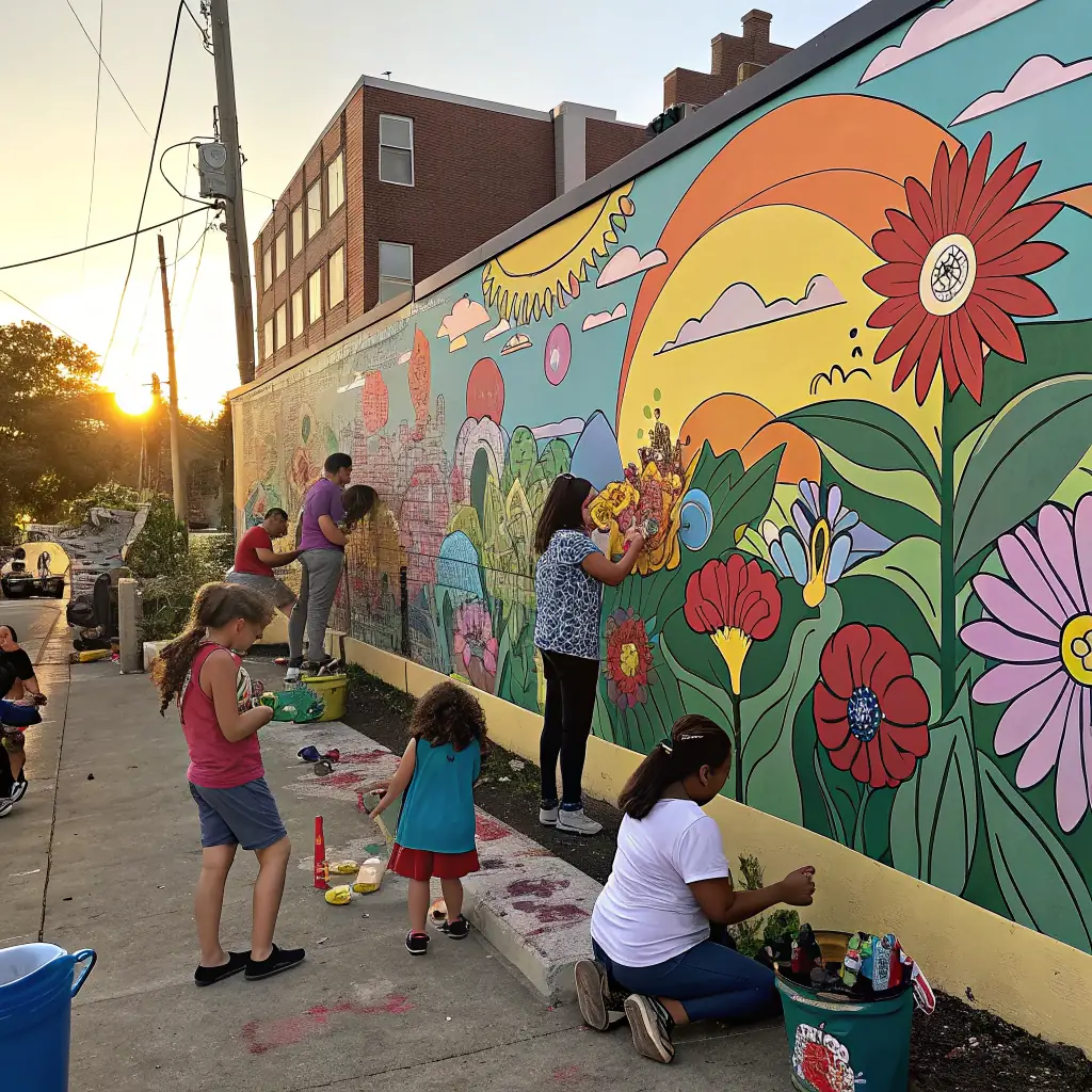 - Community Mural Project: A vibrant, large-scale mural depicting diverse cultural symbols on an urban wall.